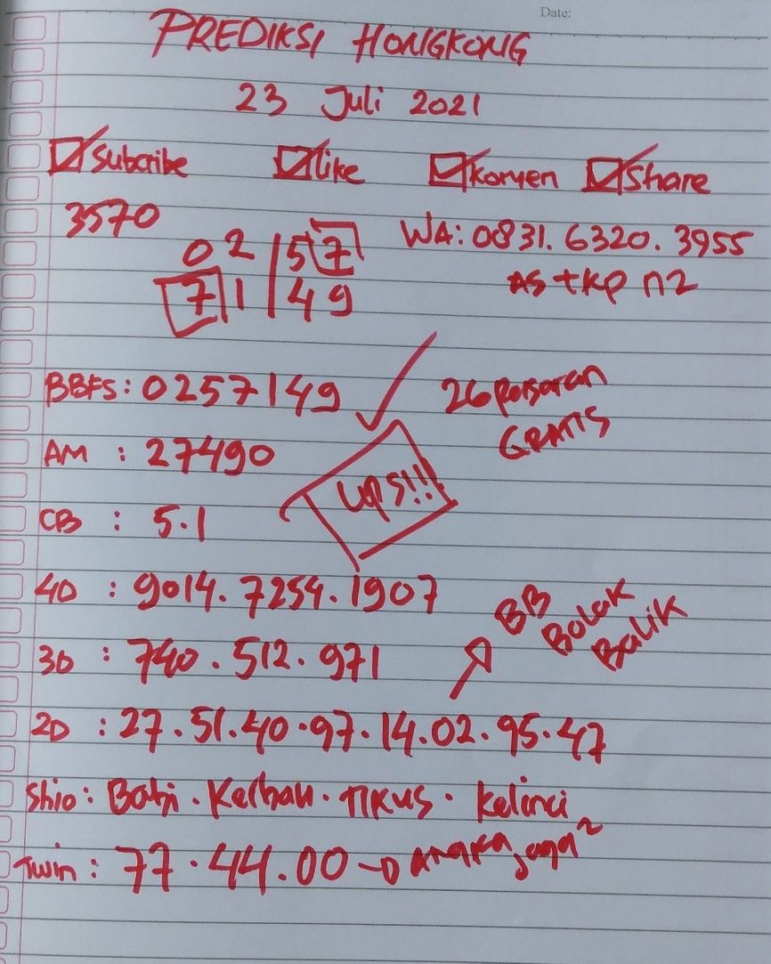 Itulah beberapa fakta menarik dan angka sakti yang ada dalam dunia togel. Meski demikian, perlu diingat bahwa bermain togel tetaplah perjudian dan keberuntungan menjadi faktor utama. Selalu main dengan bijak dan jangan terlalu menggantungkan harapan pada angka-angka sakti tersebut.